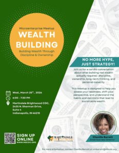 Join Martindale Brightwood CDC for the Microenterprise Meetup, a recurring gathering designed to connect small business owners, aspiring entrepreneurs, and community members interested in building sustainable businesses and long-term wealth.